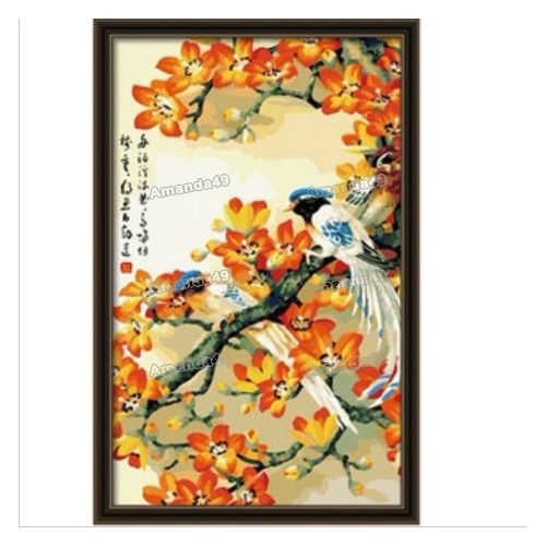 Kapok in Full Bloom Birds Cotton Canvas Hand-painted Digital Oil Painting |