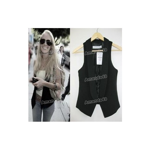Korea Black Sleeveless Waistcoats for Women |