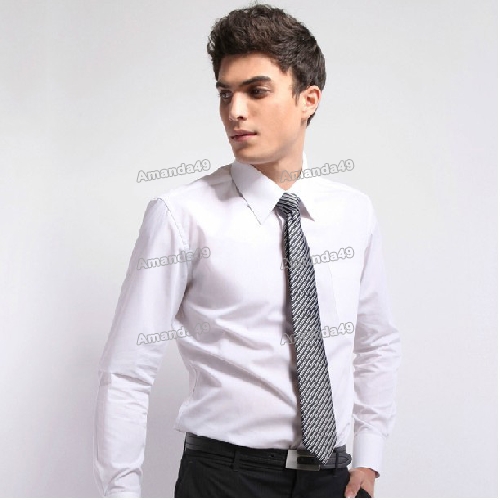 Korea Business Slim Long Sleeve Stripe White Shirts for Men |