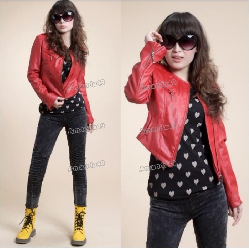 Korean Lady Autumn and Winter Round Neck Leather Jackets |