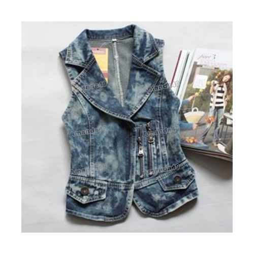 Korean Zipper Lapel Fashion Waistcoats Denim Slim Female Vest |