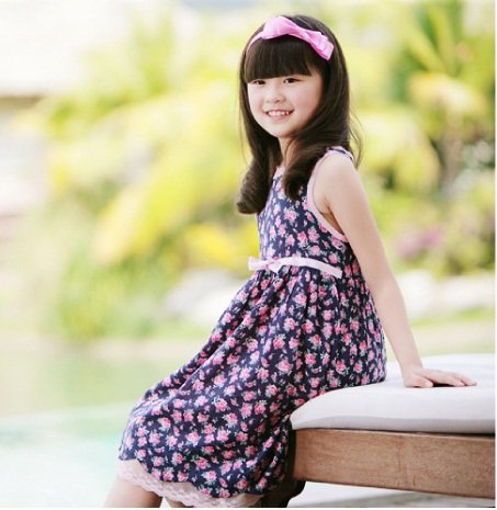 Lace Girls Cotton Sleeveless Bowknot Knee-length Skirts |