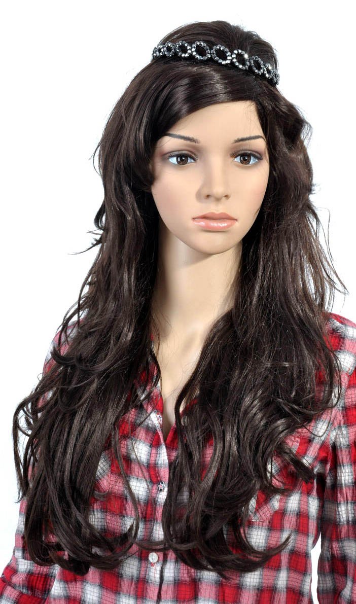 Ladies' Capless Long Black Curly Black Wave Full Bang Hairband Hair Wigs |