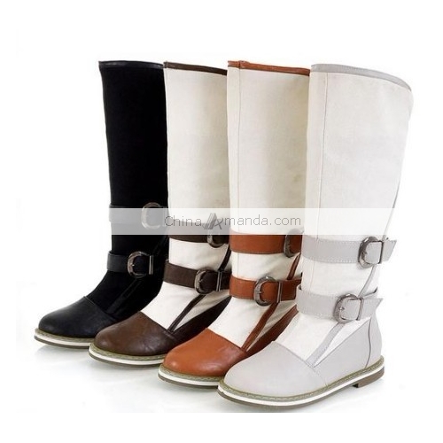 Ladies' Flat with Canvas Belt Buckle Knee High Knight Boots |
