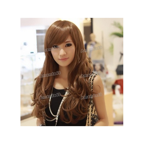 Ladies' Temperament Type Fluffy Long Curly Neat Bang Full Lace Wigs |