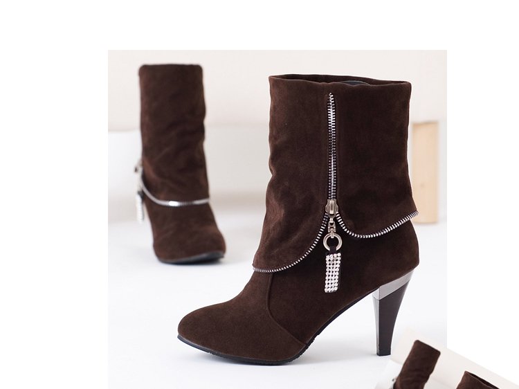 Lady PU Leather High Heel Ankle Boots with Zipper |