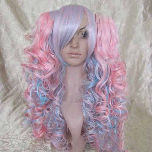 Lolita Blue Pink Cosplay Wig Long Wavy Ponytail |