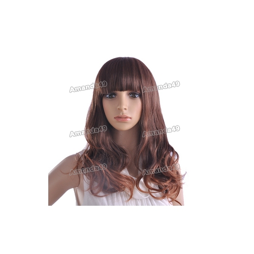 Long Fluffy Sweet and Lovely Style Neat Bang Curly Full Lace Wigs |