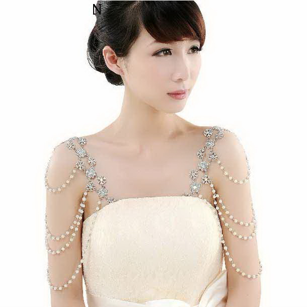 Luxury Rhinestone & Diamond Silver Plated Shoulder Chain Wedding Jewelry Sets |