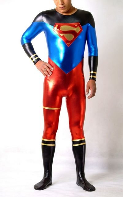 Lycra Superman Hero Spandex Comfortable Durable Back Entrance Zipper Bare Face Catsuit Costume |