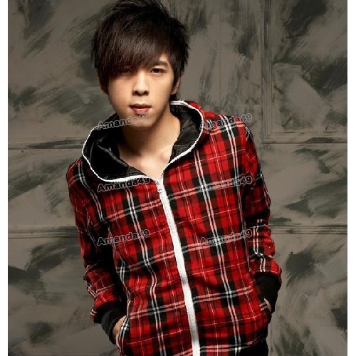 Male Plaid Coat Twoway Hooded Jacket Fall&Winter Items |