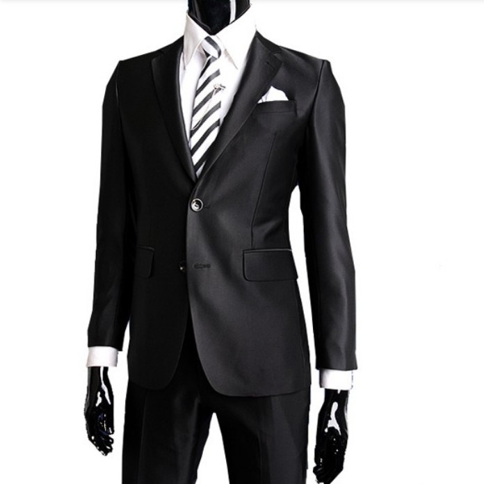 Men's Black Leisure Two Button Slim Fit Lapel Business Suit |