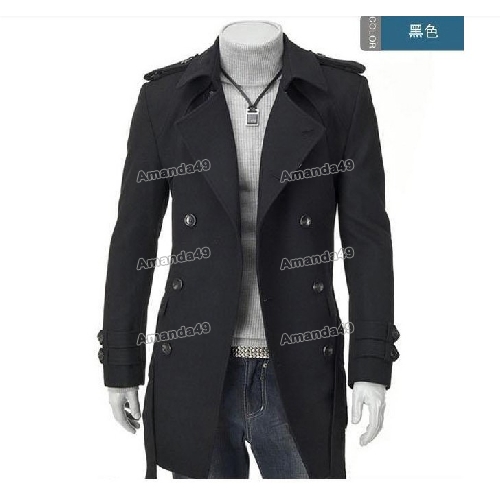 Men's British Style Large Lapel Double-breasted Woolen Coats |