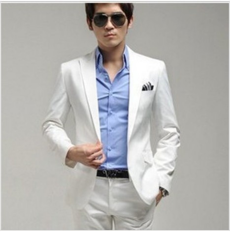 Men's Casual Slim White Side Split Suits |