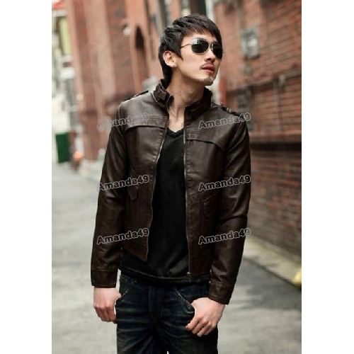 Men's Collar PU Leather Zipper Slim Korean Jackets |