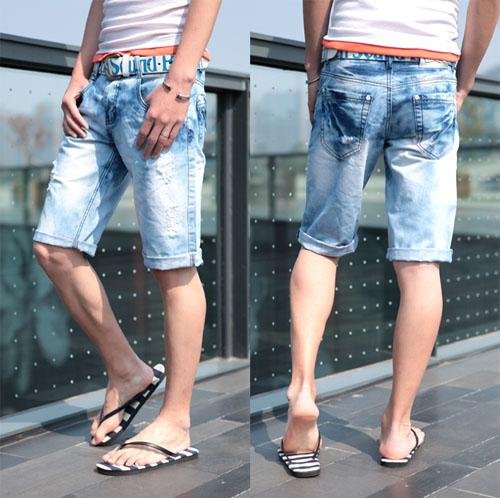Men's Cool Summer White Masticate Washing Denim Low-waist Casual Shorts |