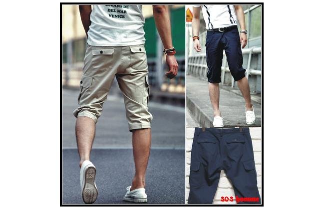 Men's Cotton Fabric Many Pocket Design Leisure Loose Leg Shorts |