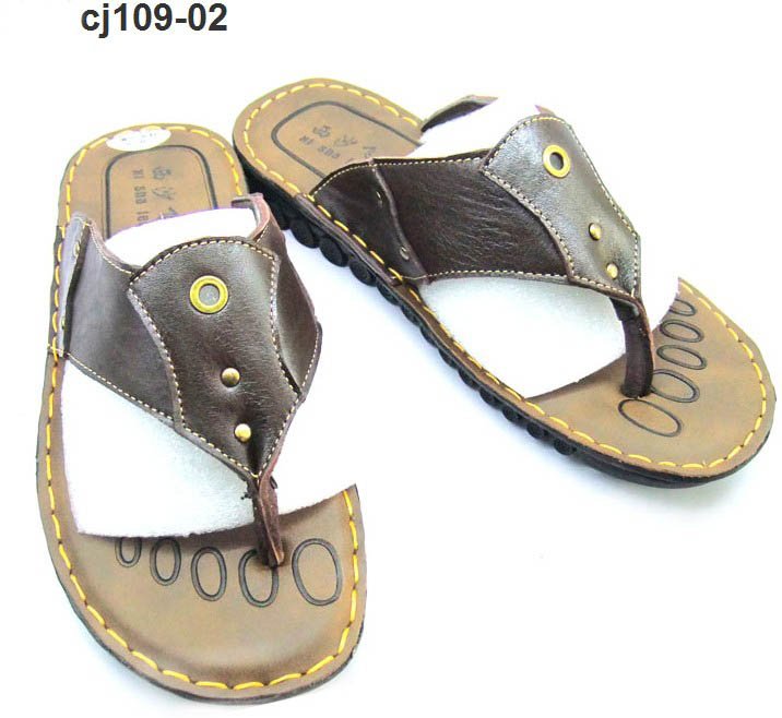 Men's Fashion Rubber Sole Leather Brown Flip Flops |