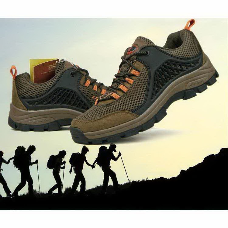 Men's Genuine Leather Round Toe Comfortable Rubber Lace-Up Climbing Shoes |