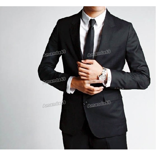 Men's Korean Casual Black Two Grain of Single Line Buckles Suits |