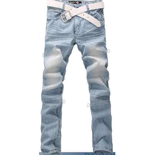 Men's Korean Style Jeans Straight Trousers Light Blue Jeans |