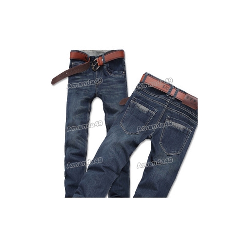 Men's Navy Blue Korean Straight Legs Thicker Jeans |