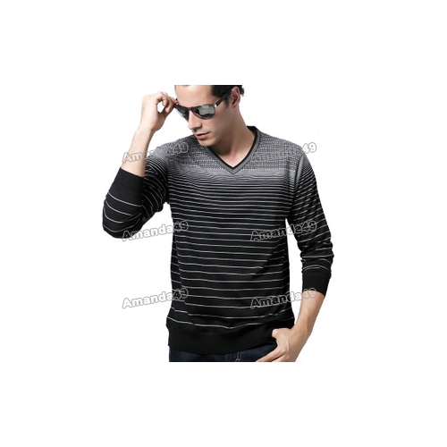 Men's New V-neck Long Sleeve Tops Wool T-shirt |