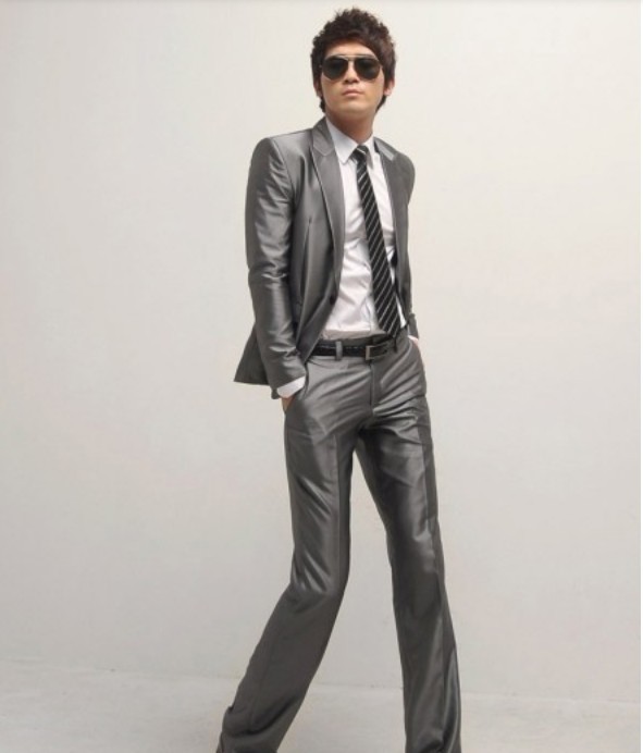 Men's Silver Split Side One Button Suits |