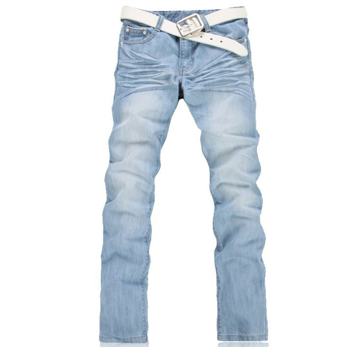 Men's Slim Straight Light Blue witn Tie Leisure Jeans |