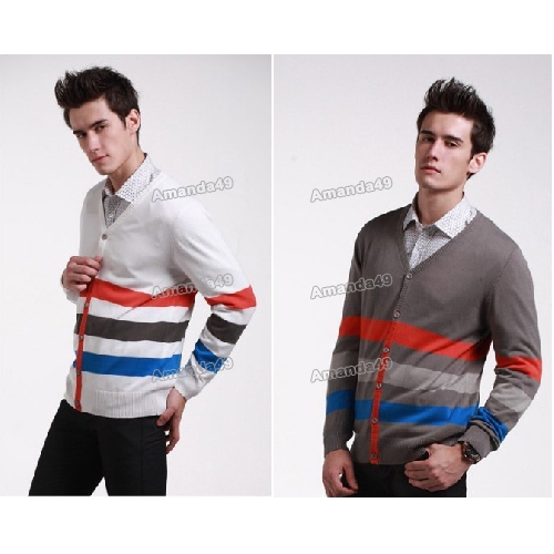 Men's Stripe Cardigan Thin Korean Style Clothing Sweaters |