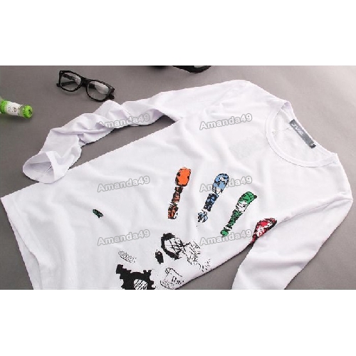 Men's Top Wear Korean Style Fingers Printed Long Sleeved Round-neck T-shirt |