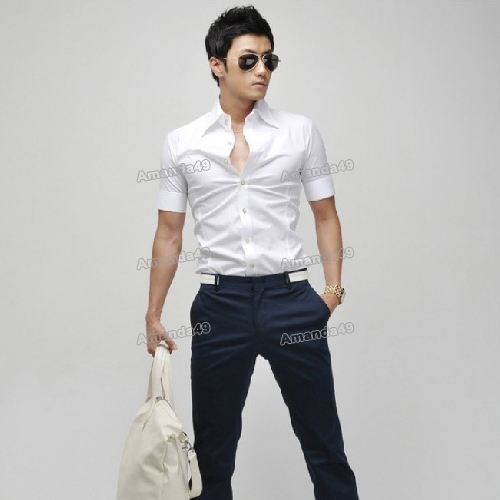 Metal Buttons Short Sleeve Slim White Shirts for Men |