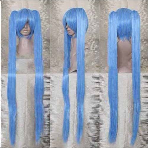 Miku White Blue Non-Remy Ponytails Cosplay Wig |