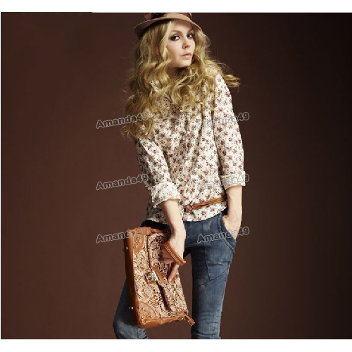 New Spring Ladies' Floral Blouses Pastoral Cotton Tops |