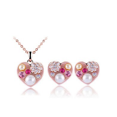 Noble Female Fashionable Heart Style Design Copper Alloy with Rhinestone Jewelry Sets |