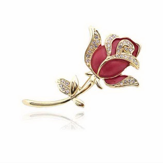 Noble Ladies Alloy Plated Red Rhinestone Rose Shape Brooch |