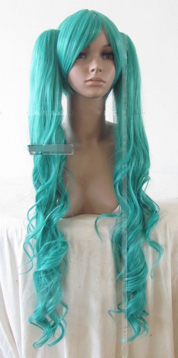 Non-Remy Long Wavy Light Green Cosplay Party Hair Wig |