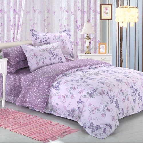 Purple Flower Cotton Twill Bedding Set |