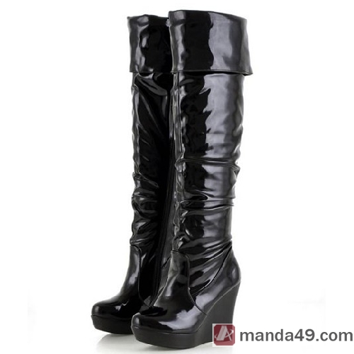 Shiny Patent Leather Sexy Pole Dancing Wedge Thigh-High Boots |