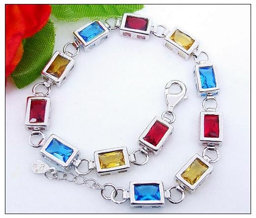 Silver Chain Platinum Plating Colorful Gemstone Square Shape Bracelet |