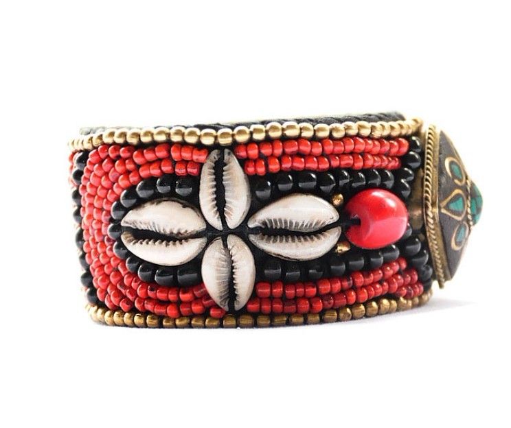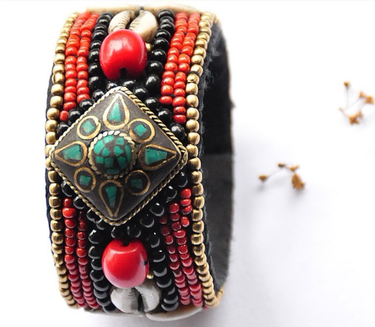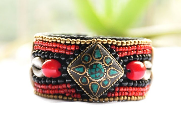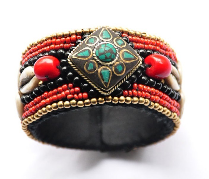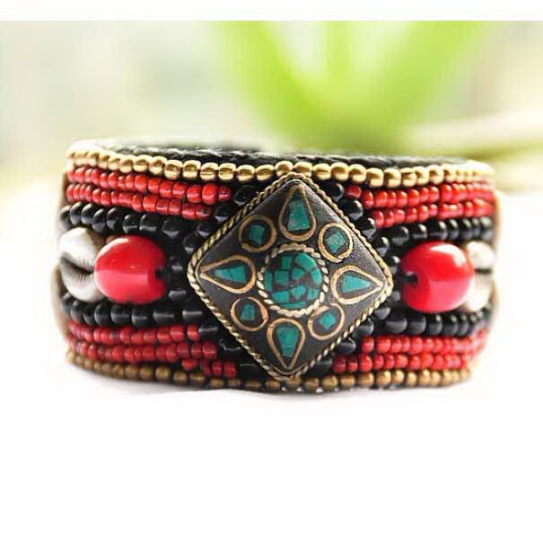 Tibetan National Style Turquoise Red Coral Beaded Embroidery Nail Circle Bracelet Bracelet |