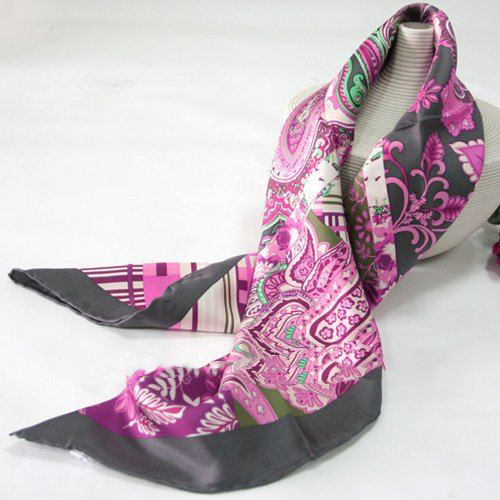 Material: 100% Silk Place of Origin: Zhejiang China (Mainland) Brand Name: China peaceful silk zhuang Technics: Woven Density: 16mumi Pattern: Printed Style: Twill Model Number: HA569 Supply Type: In-Stock Items Yarn Count: 12mumi Weight: 55g Use: accessories Width: 90*90 Type: Silk twill COLOR: Black edge