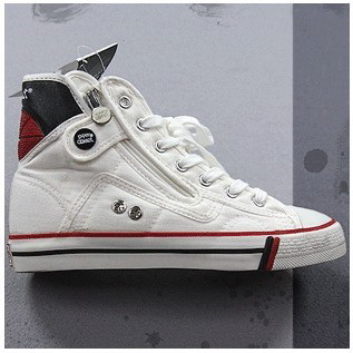 Unisex White Canvas Lace-up Side Zipper Rubber Sole Flat Bottom Shoes |