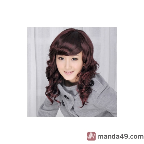 Wine Red Neat Bang Long Curly Party Wigs |