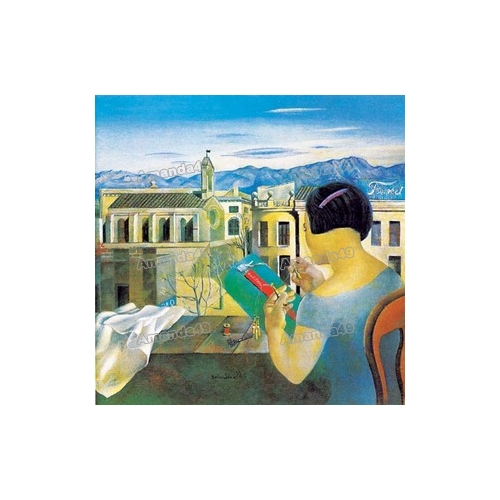 Woman Sit by the Window of Figueras Abstract on Canvas Painting Frameless Oil Painting |