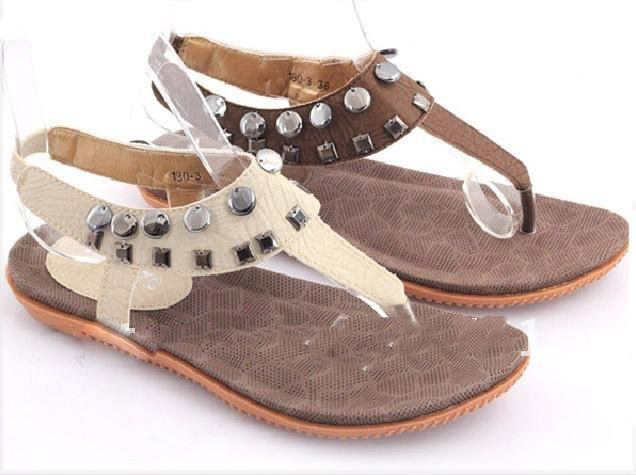 Department Name: Adult Item Type: Sandals Place of Origin: Guangdong China (Mainland) Shoe Width: Medium(B,M) Upper Material: PU Decorations: Rivets Pattern Type: Solid Gender: Women Sandle Type: Flip Flops Lining Material: PU Occasion: Casual Model Number: 191-4 Outsole Material: TPR condition: brand new heel style: flat heel color: ivory,brown,mix color