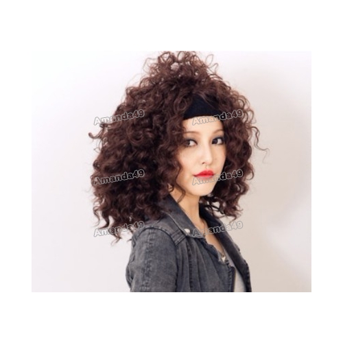 Women Dark Brown Long Fluffy No Bang Curly Full Lace Wigs |