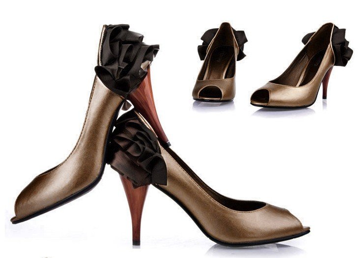 Women Korea PU Leather Flowers Peep Toe High Heeled Clogs |