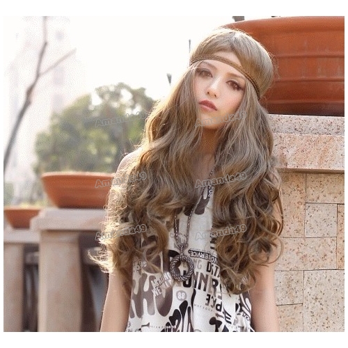 Women Western Style Long Curly Retro Halve Bang Full Lace Wigs |