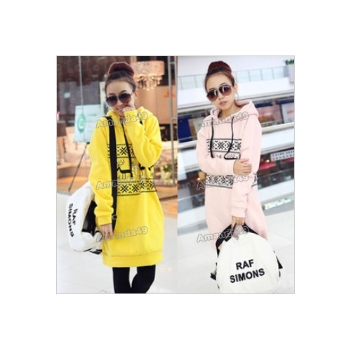 Women's Autumn and Winter Korea Printing Deer Hoodies Loose Long Style Coat |